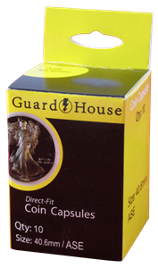 Guardhouse direct-fit coin capsules in convenient 10 packs are perfect for retail. Made from high grade acrylic, these coin holders as crystal clear, extremely durable and scratch resistant. The 40.6mm with a large exterior dimension will fit 1oz American Silver Eagles. This holder also fits larger sized poker chips with diameter greater than 39.3mm.
