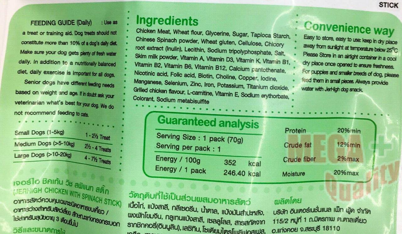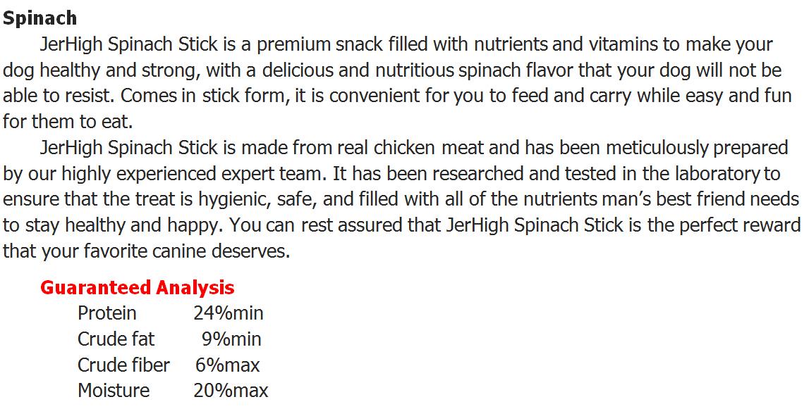 | | | JerHigh Vegetable Spinach Stick Dog Snack Treats Made from Chicken Meat 70 g | Shipping Details: - The item will be shipped worldwide next business day after the money has been transferred to my Paypal account and you should received in 2-4 weeks. The item will be posted by airmail from Thailand in well package and send by Non-Registered airmail.