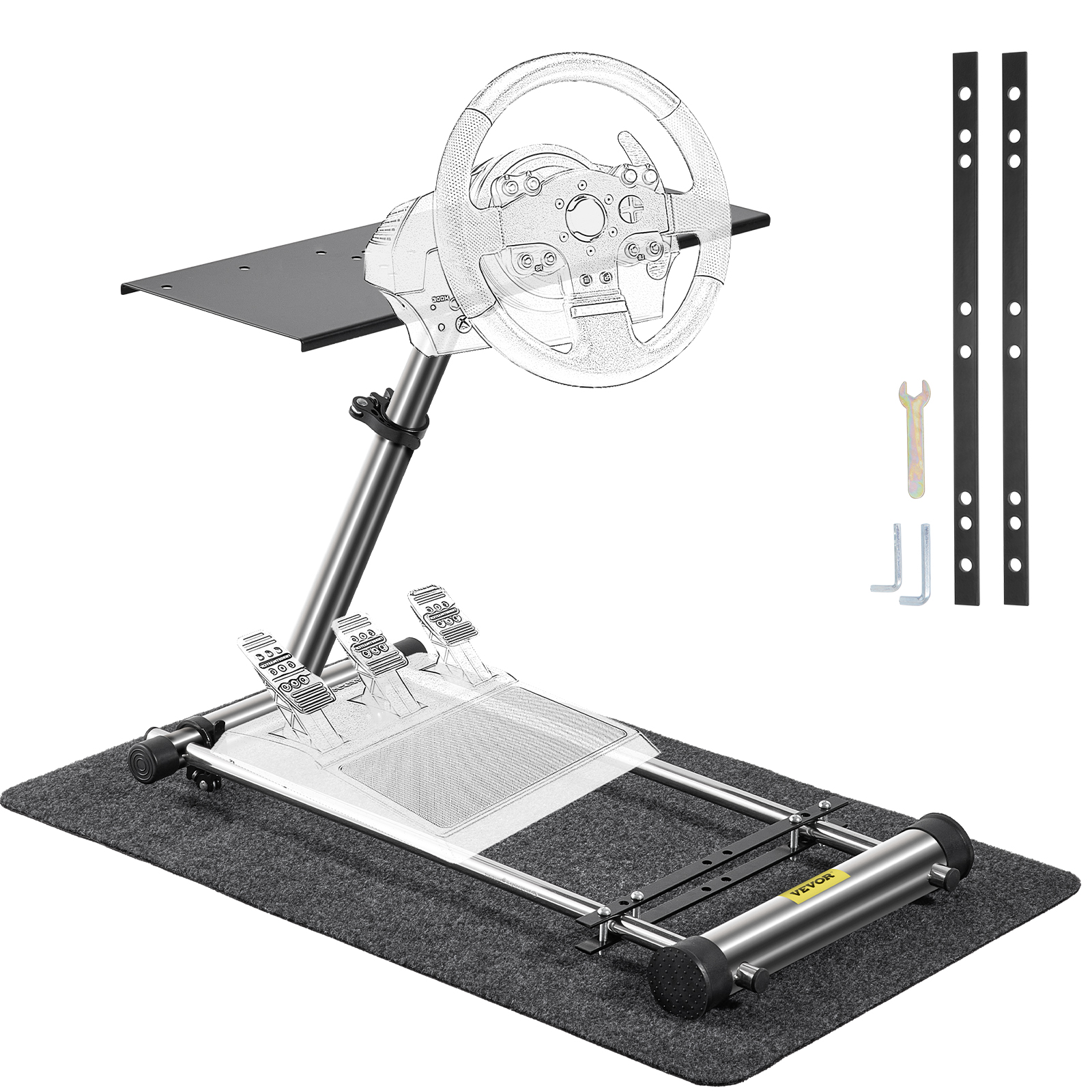 El soporte del volante es ajustable en ángulo, inclinación y altura (24,4" - 31,5" / 62 - 80 cm), lo que permite que los jugadores de diferentes tamaños lo usen. Además, puede ajustar el volante y el pedal en cualquier posición ergonómica.
