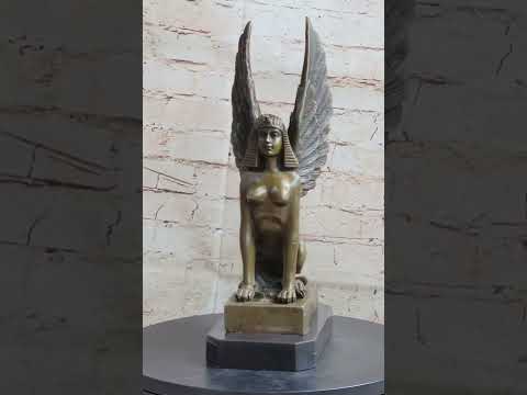 This fine art bronze sculpture captures the essence of the Sphinx's mystique and power. Hand-tooled with precision using the lost wax casting method, the sculpture showcases intricate details, from the golden bronze finish of her skin tones to the flowing tresses of her hair. Her voluptuous figure and regal face add to the allure and grace of the artwork.