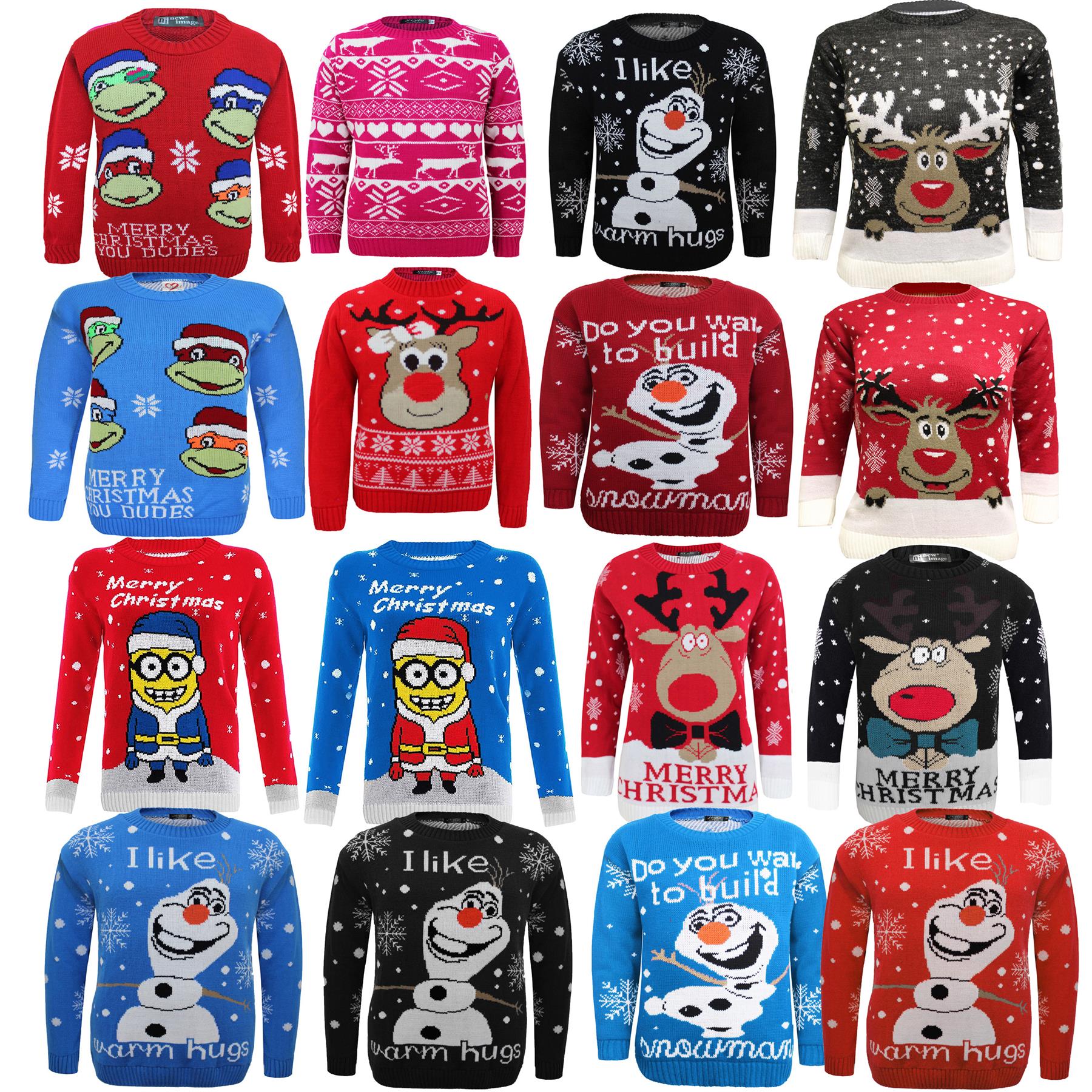 Knitted Crew Neck Olaf Christmas Xmas Novelty Jumper Top Sweater Kids Girls Boys