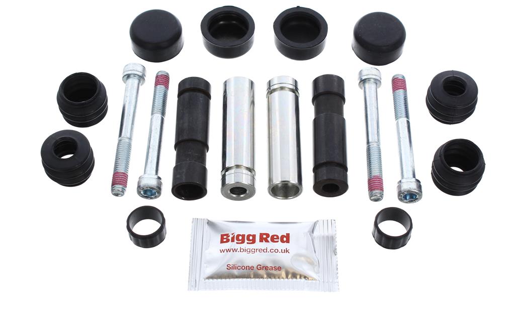 This kit contains 2 slider Pins (1 of each type), plus locking bolts & slider rubbersand grease, enough to service 1 caliper