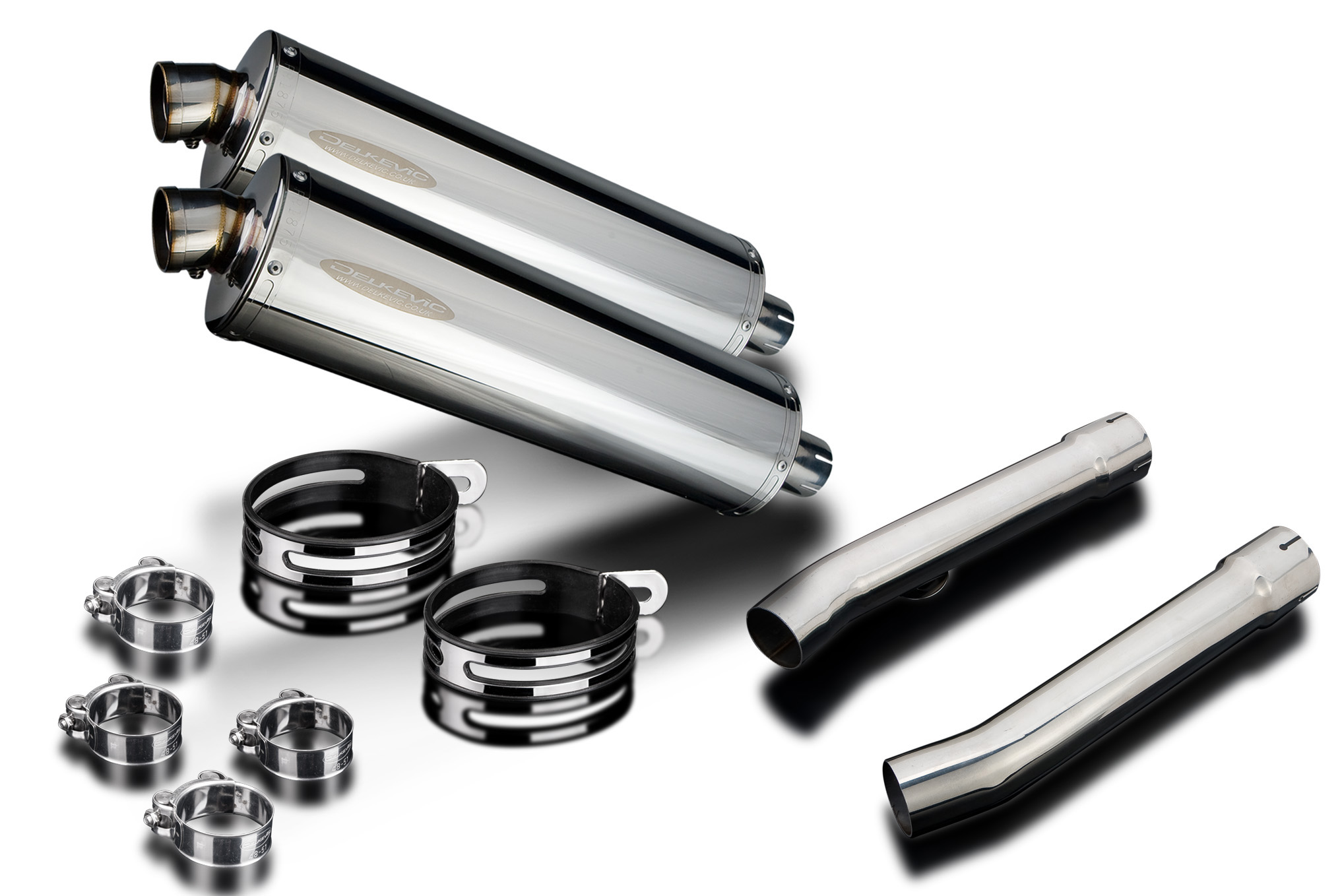 - This set includes - Delkevic silencers with removable baffles, link pipes, straps, and clamps.