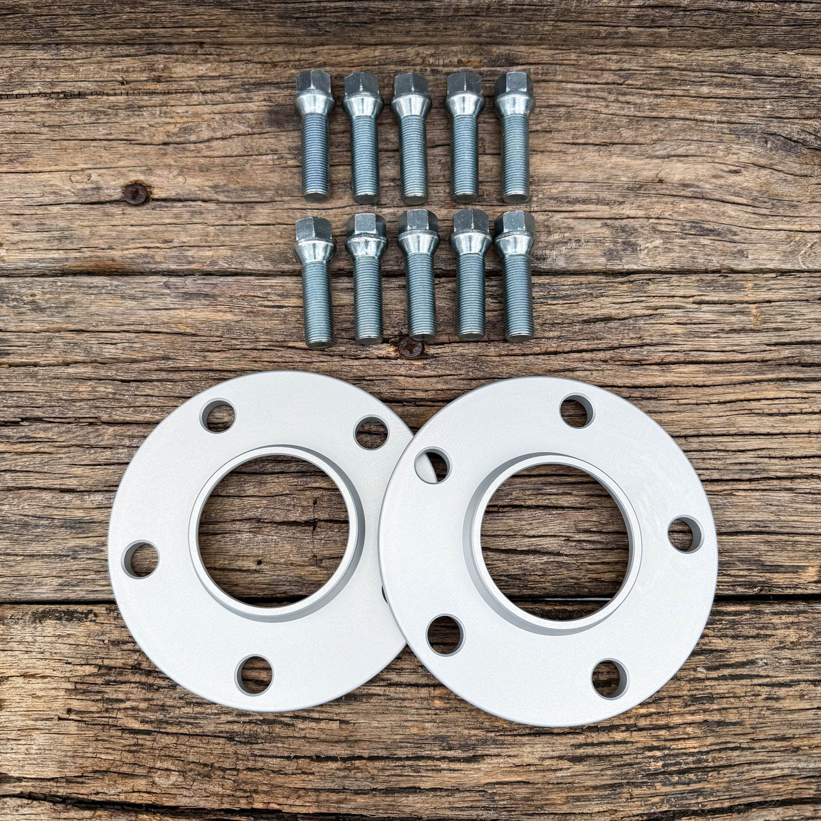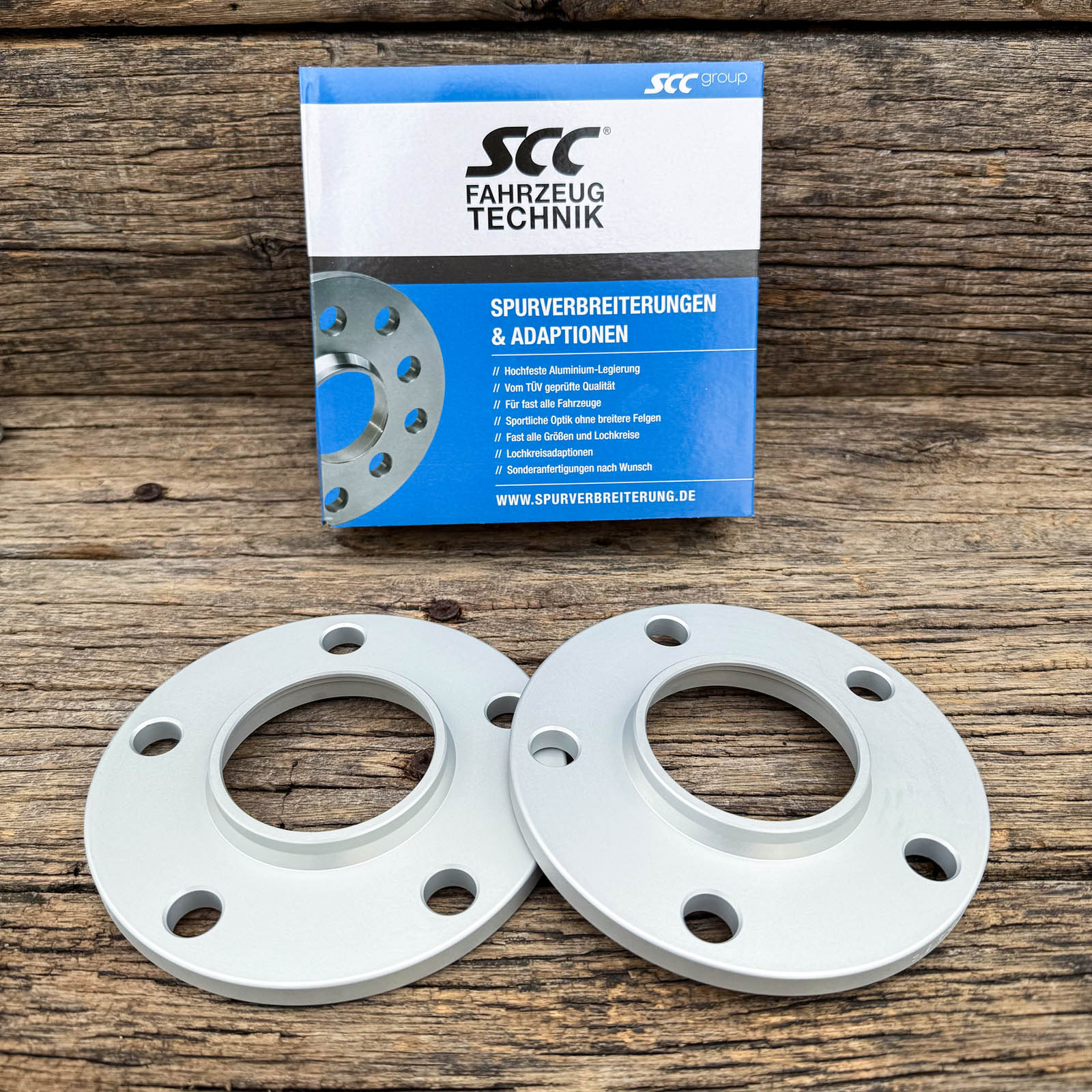 Spurplatten / Spurverbreiterung von SCC 2x 10mm pro Seite - 20mm pro Achse mit Lochkreis 5x120 und Radschrauben 10xM14x1,25x37 Kegel