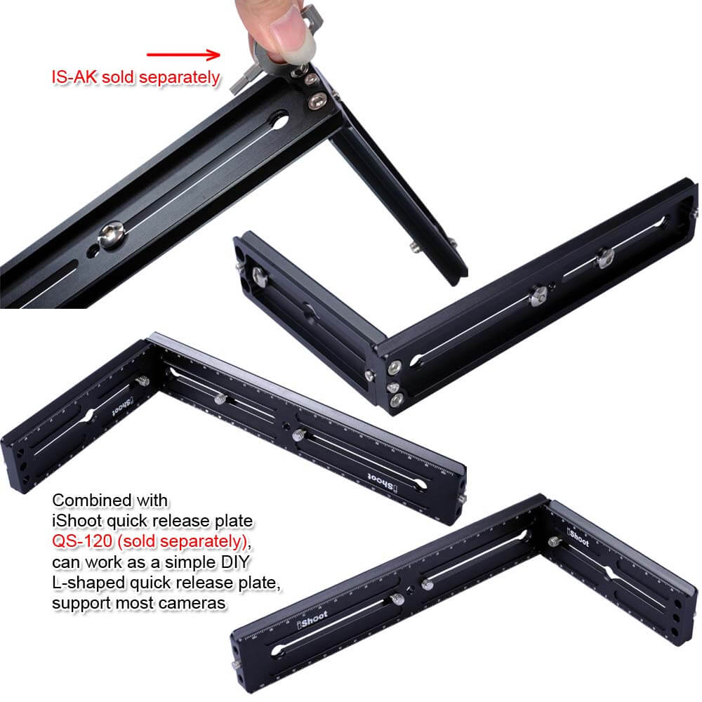 1 x iShoot Lengthened Quick Release Plate QS-220 1 x iShoot Long-focus Lens Support IS-TB01 (The other items in the photos not listed here are for illustrating only, not included) |