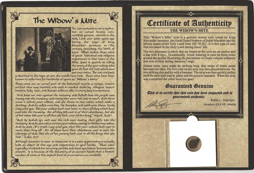 Bronze prutah of Alexander Janeaus, king of Judaea, minted ca. 100 BCE. The Widows Mite mentioned in the Gospels of Mark and Luke – Jesus’ parable about a poor widow who gave ”two mites…all she had”