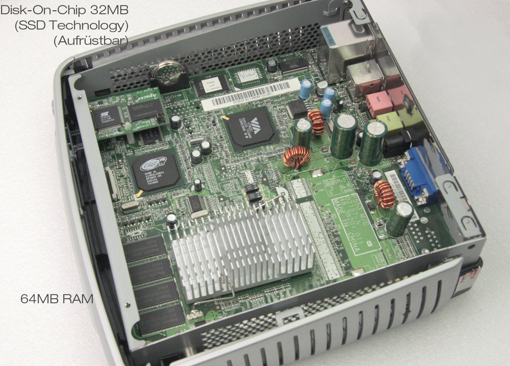 Scope of delivery: 1x mini-PC with 32MB Doc (SSD) hard drive (disc-on-chip) and power supply;
