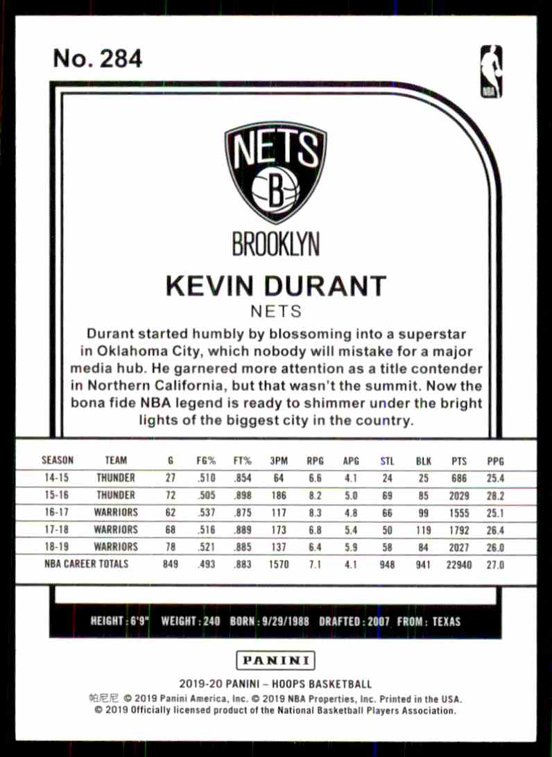 | 2019-20 Panini NBA Hoops Winter Tribute 284 Kevin Durant |