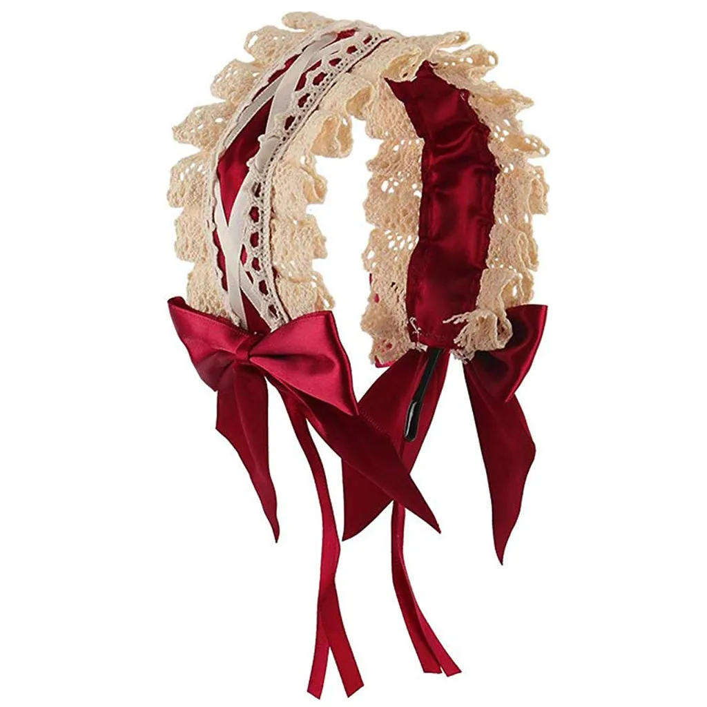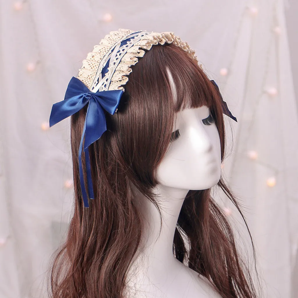 Lace Ribbon Bowknot Headband Cosplay Headdress Cute Japanese sweet Lively Alloy Hair Band Lolita Cos Maid opaski do wlosow
