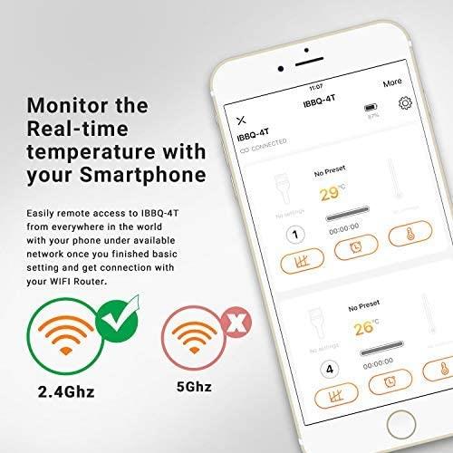 - 【WiFi Connection】: Please connect one or more bbq thermometer to your phone over 2.4GHZ Wi-Fi, open the app and then you could monitor multiple digital BBQ with your phone easily anywhere;