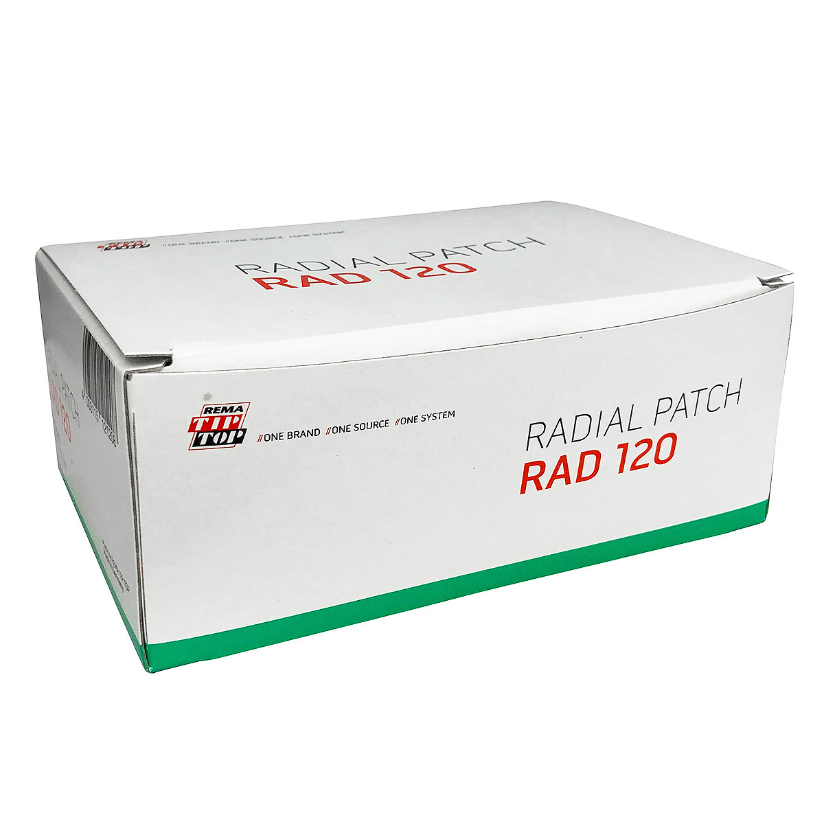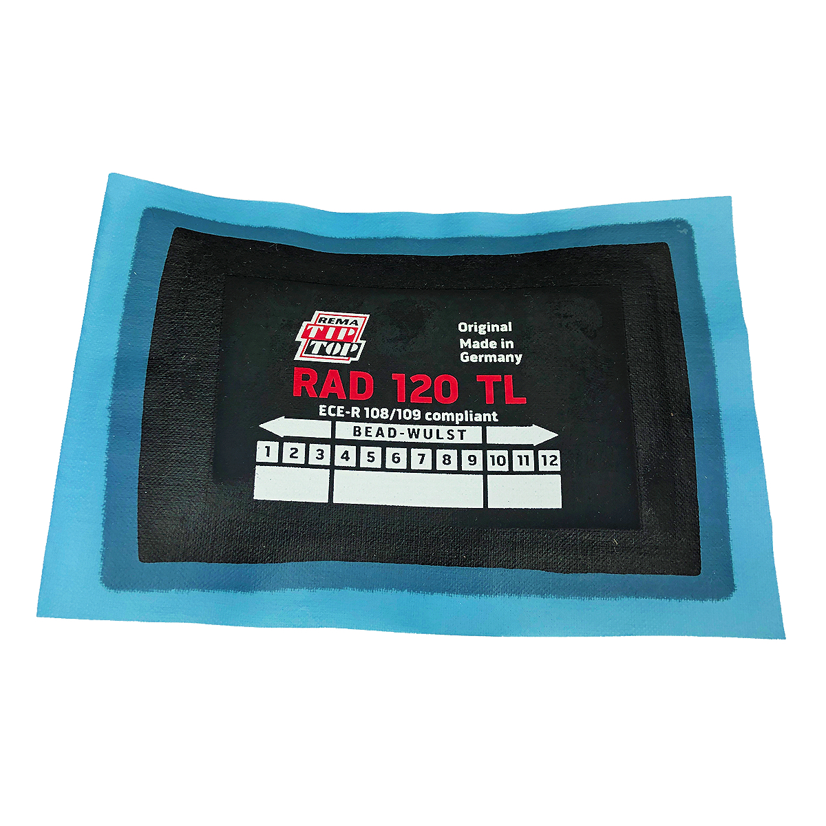 This is a Single Rema Tip Top RAD120 self-vulcanizing repair patch for punctured radial tires. Rema Tip Top Radial-Ply repair units are suitable for use with all current vulcanizing systems and are suitable for hot or cold vulcanisation due to the unique bonding