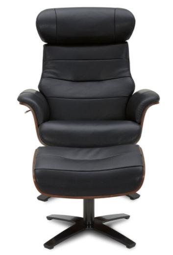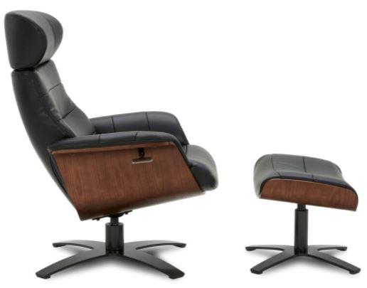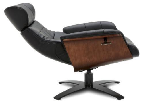 Indulge your appreciation for design and comfort all at once with the Gilman Creek Karma Swivel Chair. This manual leather recliner updates the design of a modern classic. Dial in the adjustable headrest to your preferred height and angle, pull up the matching footrest and enjoy!