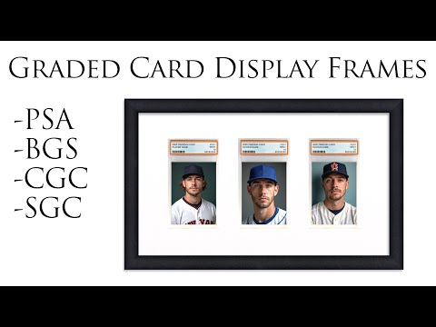 Color: Black Frame Outer Dimensions: 27 1/8" x 15 1/8" Frame Width (face): 3/4" Frame Height (thickness): 1 1/4" Mat Color: Choice of White or Black Mat Type: Conservation Grade, Acid Free, Lignin Free, White Core Card Orientation: Choice of Portrait and Landscape Graded Card Holder: PSA standard size 3 1/8" x 5 5/16"