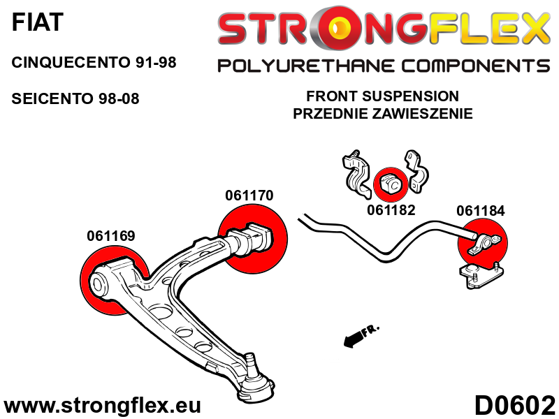 RED - hardness of about 80 ShA* - suspension components have a hardness similar to the original metal-rubber bushes.