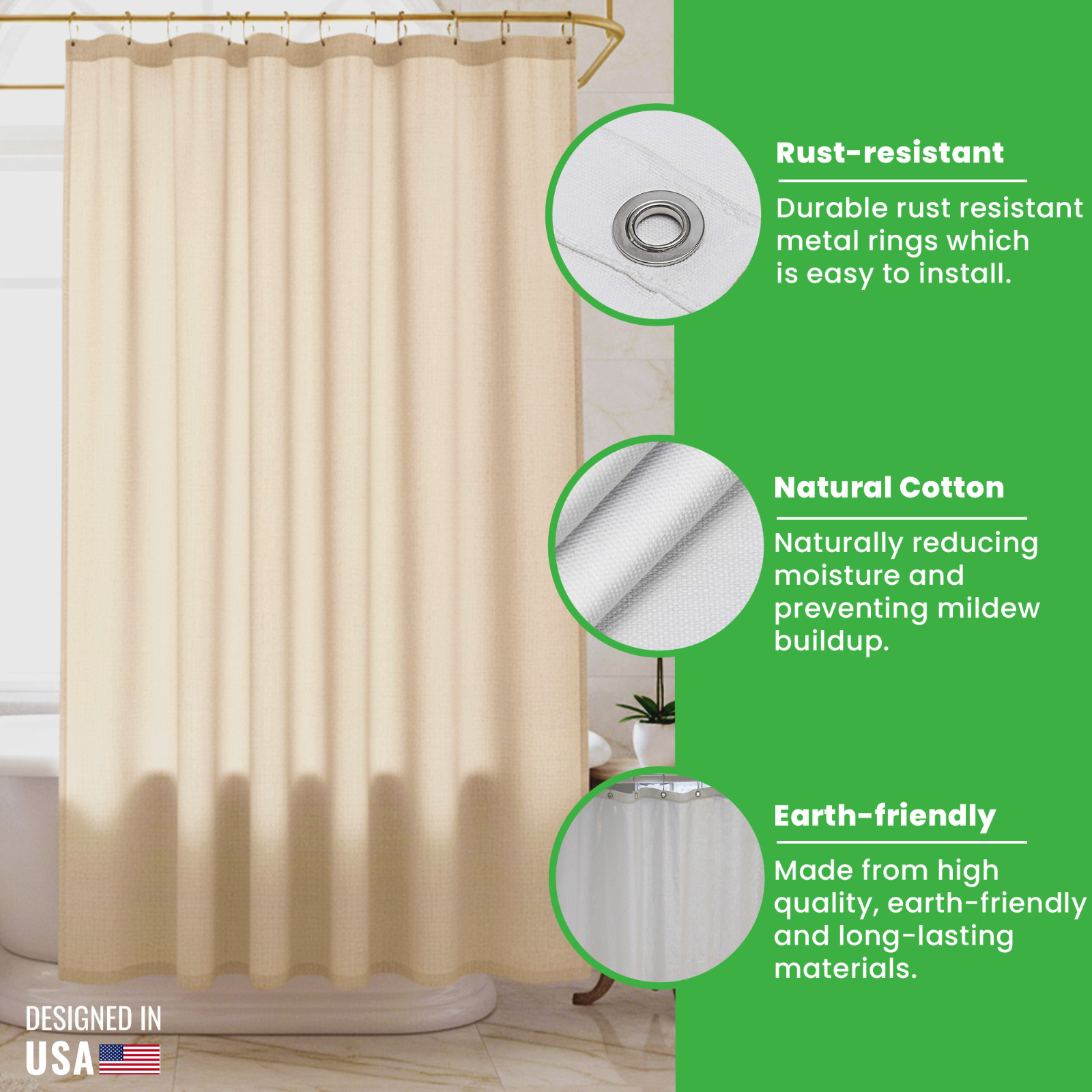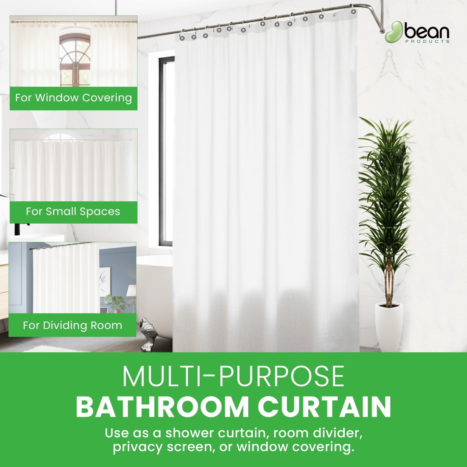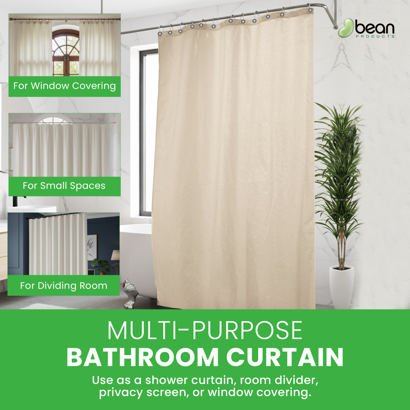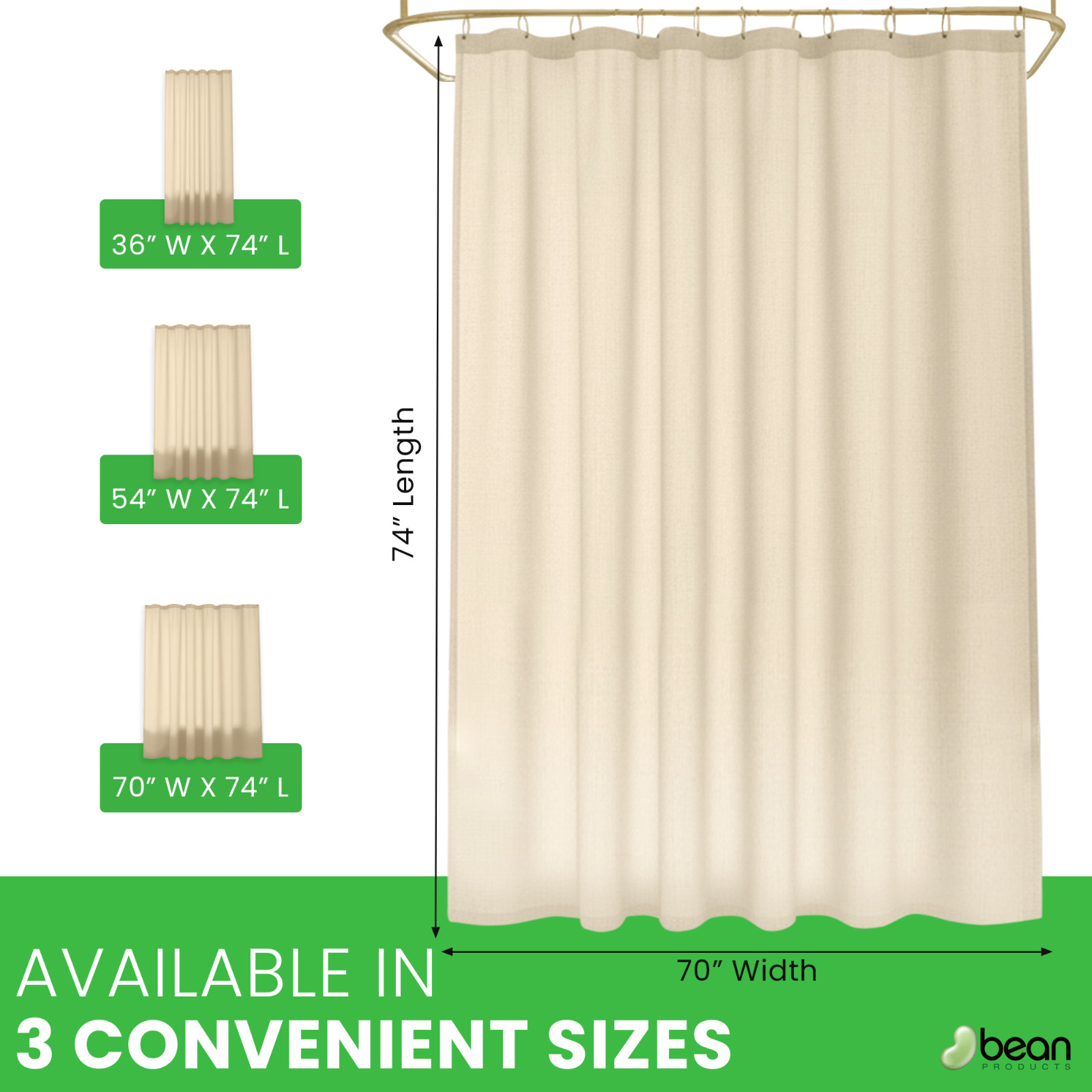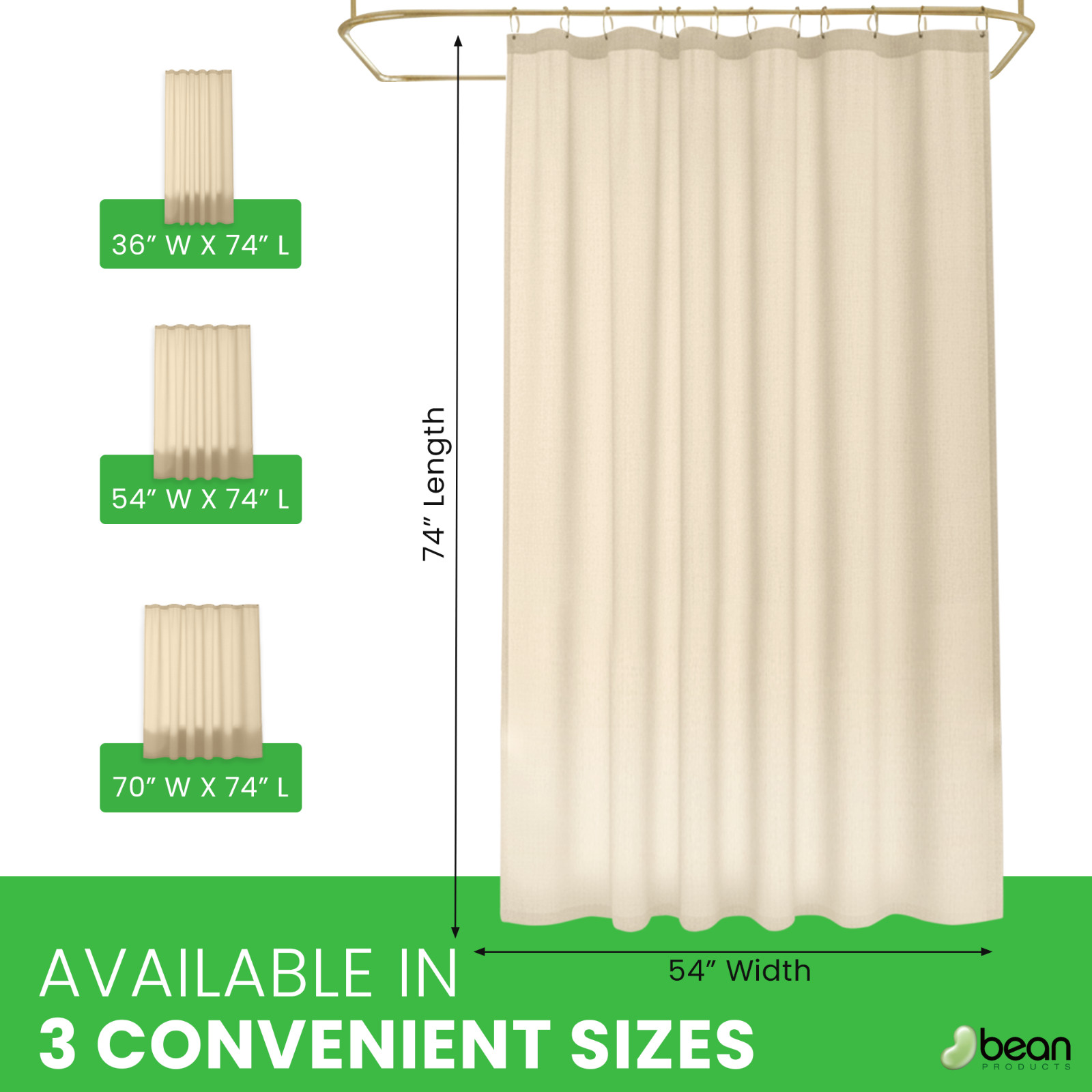 Bean Products presents a premium natural shower curtain that is made from high-quality, breathable cotton. It offers an eco-friendly and skin-safe touch to your shower experience. It fits most narrow showers, providing full coverage while adding a stylish look. The curtain features reinforced hook openings for easy installation on most rings or hooks and is compatible with various liners. Beyond the bathroom, its versatile design allows it to serve as a lightweight room divider, privacy curtain, or window covering. Built for durability, it includes a reinforced top hem and rust-resistant grommets to ensure it stands up to daily use without fraying or tearing. Its breathable fabric dries quickly, stays fresh, and resists buildup, making it easy to clean. Machine washable, it retains its softness and durability over time, offering long-lasting use. Made from natural cotton, this curtain is an eco-conscious choice that combines functionality with timeless elegance, making it a perfect addition to any bathroom or space in need of a natural, breathable fabric.