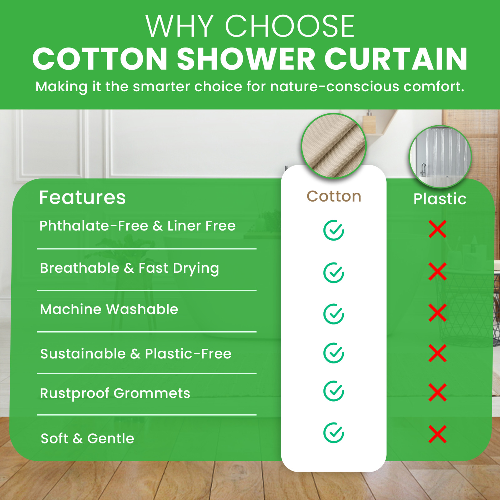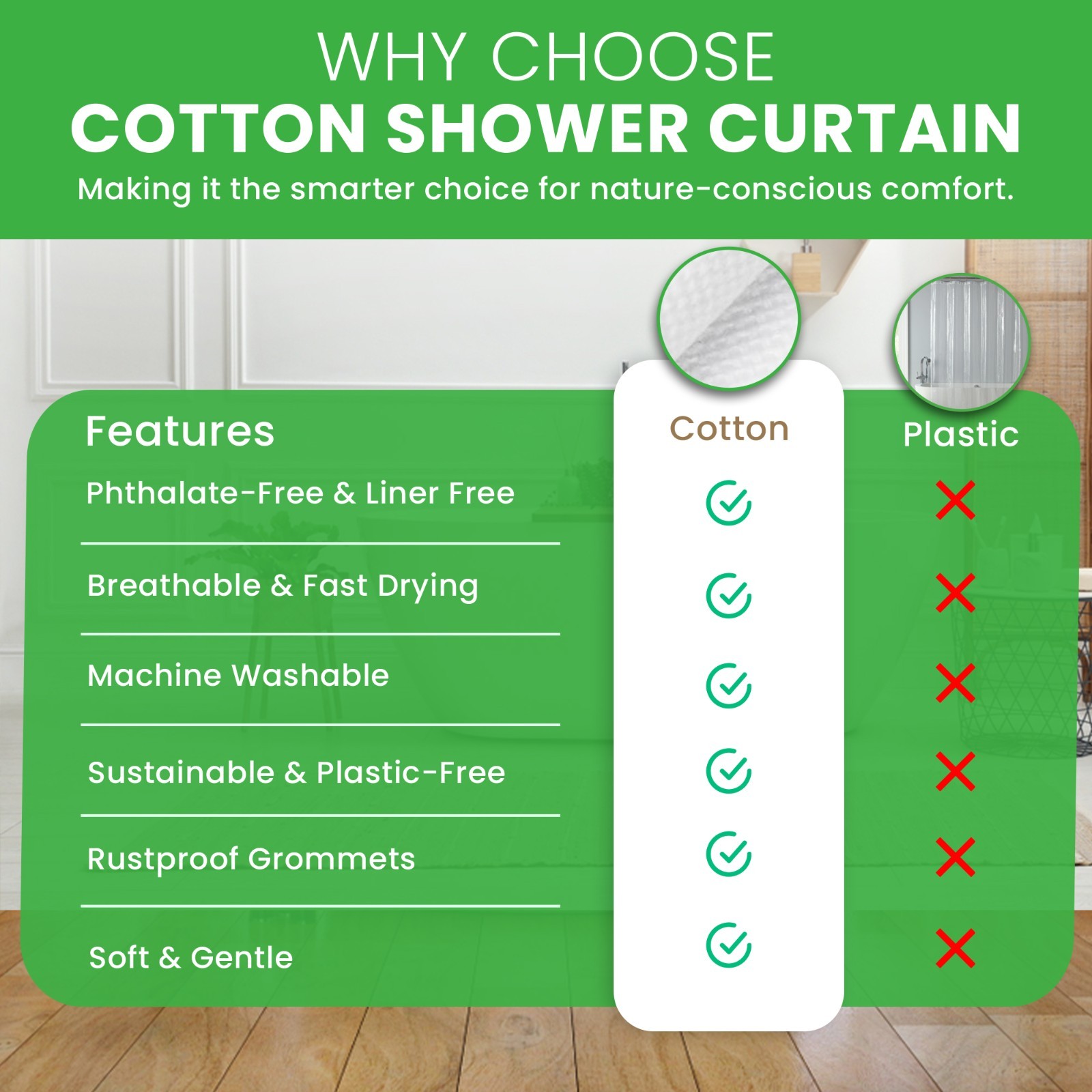 πππππππ πππππππππ: Our premium natural stall shower curtain is crafted from high-quality, breathable cotton, offering a soft and natural feel. It provides a smooth, skin-safe, and eco-friendly touch to enhance your shower experience. Unlike synthetic materials, it promotes proper airflow, helping to keep the space fresh while naturally reducing moisture and preventing mildew buildup.
