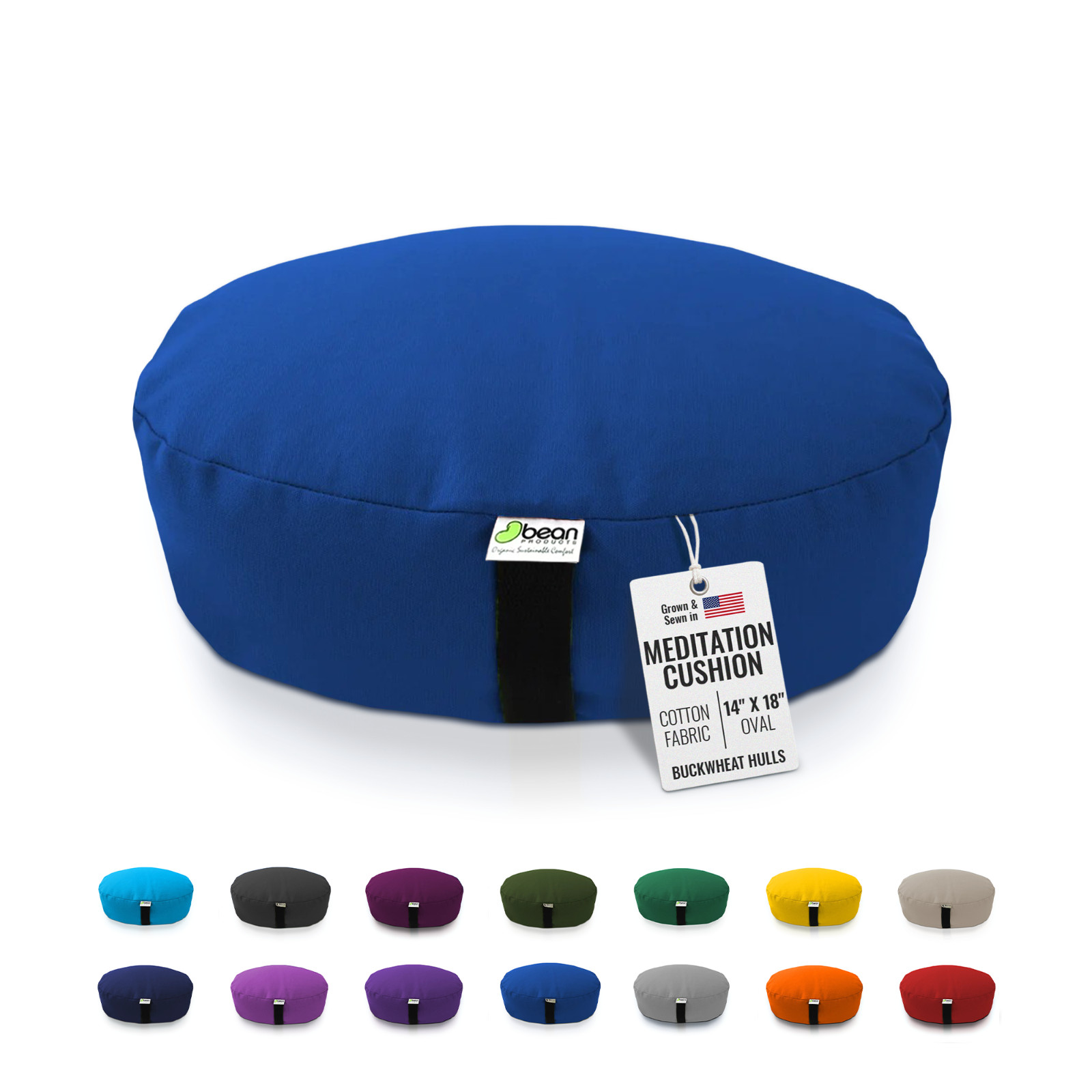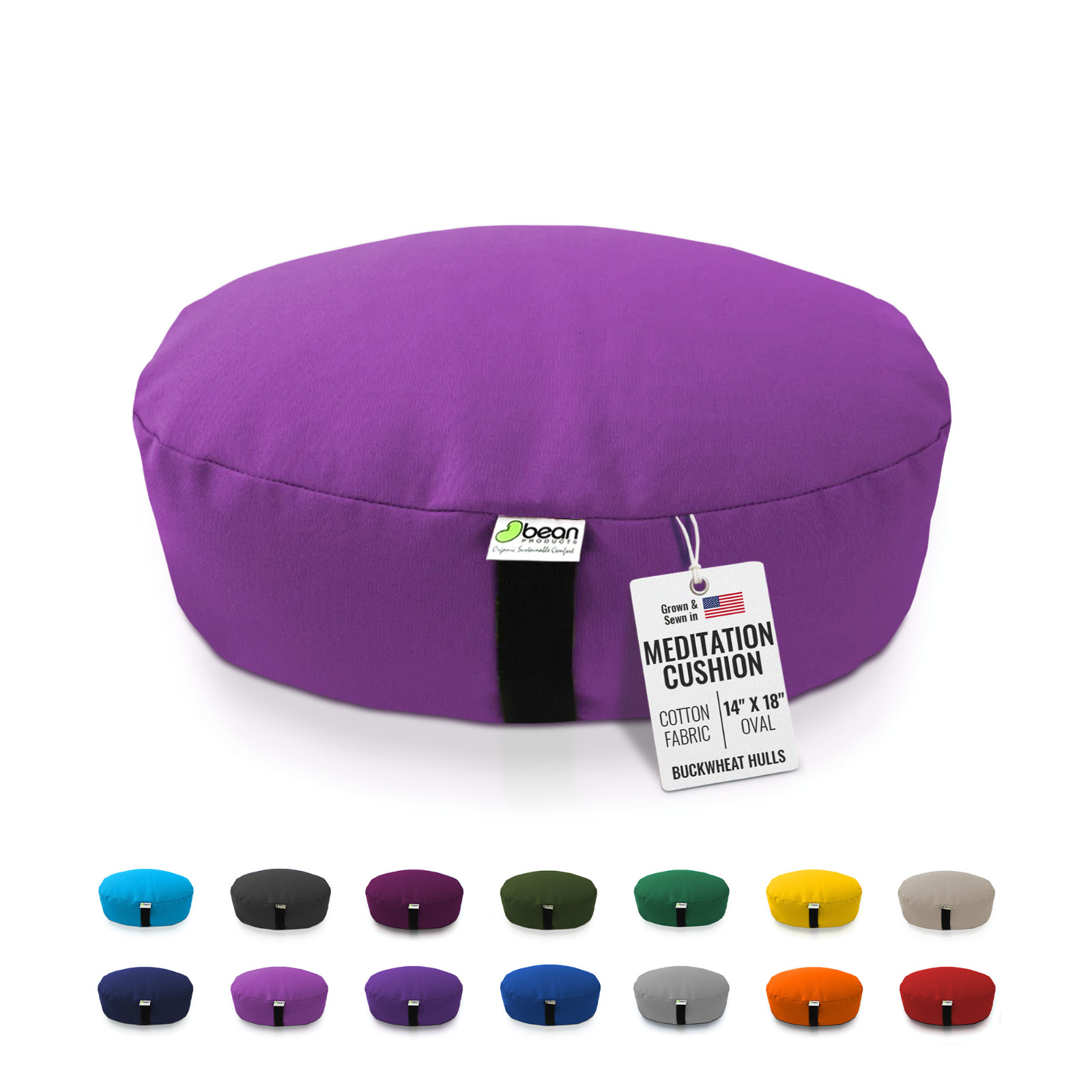 Bean Products Zafu Yoga Meditation Cushion is specially designed to enhance your meditation practice. Adding a touch of style to your space. Our Zafu Cushion offers an ergonomic design aimed at providing better spine alignment, less body stress, and a deeper, more effective meditation experience. The cushion is generously filled with organic buckwheat hulls grown in the USA. The cushion boasts a sleek modern design with a hidden zippered opening for easy cleaning and a convenient carry handle.