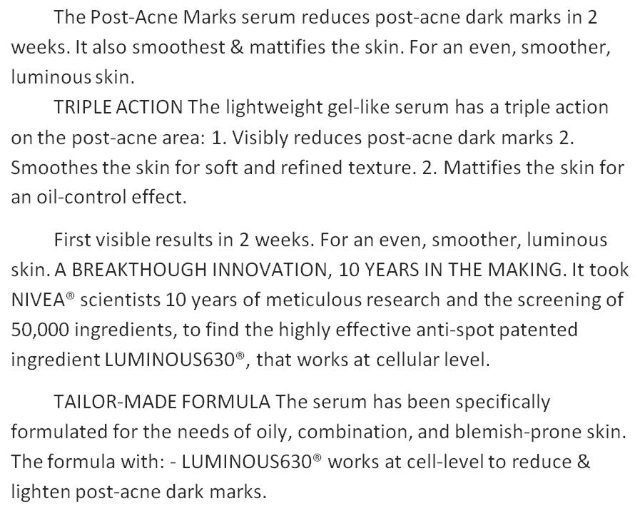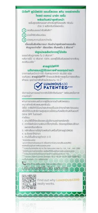 | | | Nivea Luminous630 Anti Spot Post-acne Marks Serum Smoothest Mattifies Skin 30ml. | Shipping Details: - The item will be shipped worldwide next business day after the money has been transferred to my Paypal account and you should received in 2-4 weeks. The item will be posted by airmail from Thailand in well package and send by Non-Registered airmail.