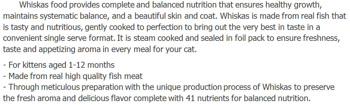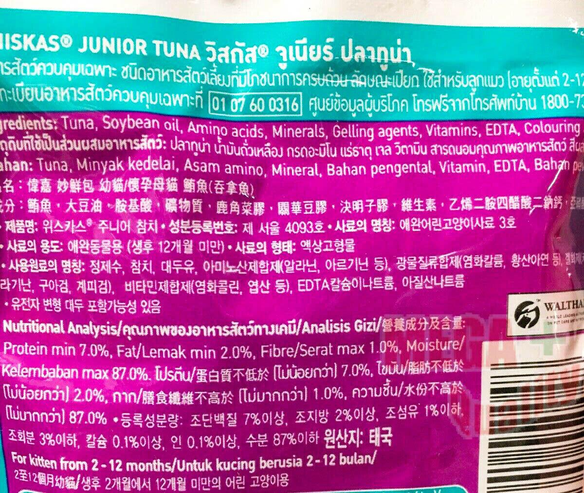 | 80 g. Whiskas Pouch Junior Cat Kitten Wet Food From Real Fish Tuna Flavor |
