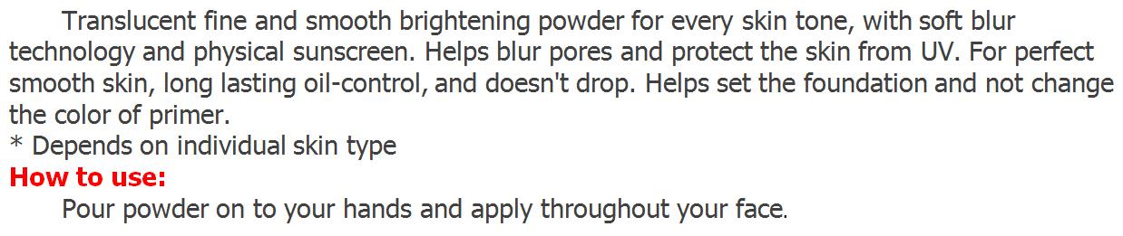 | | | Pond s Blurring Filler Translucent Nude Powder Soft Blur 45 g. | Shipping Details: - The item will be shipped worldwide next business day after the money has been transferred to my Paypal account and you should received in 2-4 weeks. The item will be posted by airmail from Thailand in well package and send by Non-Registered airmail.