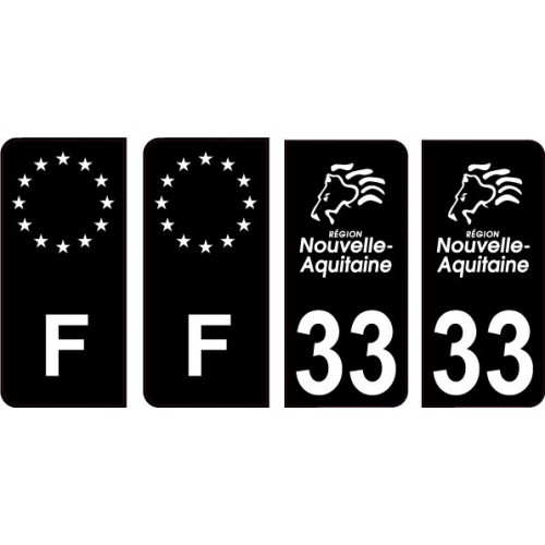 Autocollants Stickers aux dimensions des plaques d'immatriculation du département 33 Gironde logo et conforme aux dimensions des plaques d'immatriculations d'origines pour voiture auto. Lot de 4 Stickers décoratifs prédécoupés style immatriculation Auto 2 F arrondis côté gauche + 2 numéros arrondis côté Droit : 33