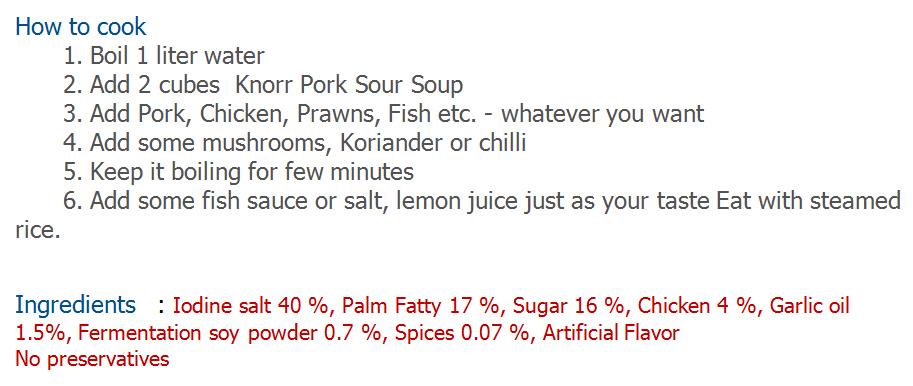 | | | KNORR THAI PORK FLAVOR SOUP BOUILLON 4 CUBES SEASONNING 40 G. | Shipping Details: - The item will be shipped worldwide next business day after the money has been transferred to my Paypal account and you should received in 2-4 weeks. The item will be posted by airmail from Thailand in well package and send by Non-Registered airmail.