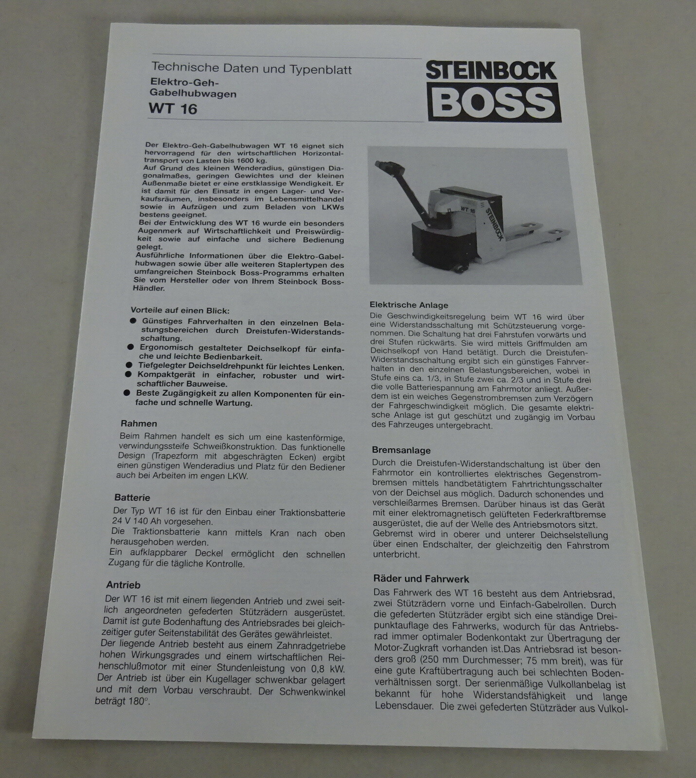 Technisches Datenblatt / Typenblatt original Steinbock Boss
