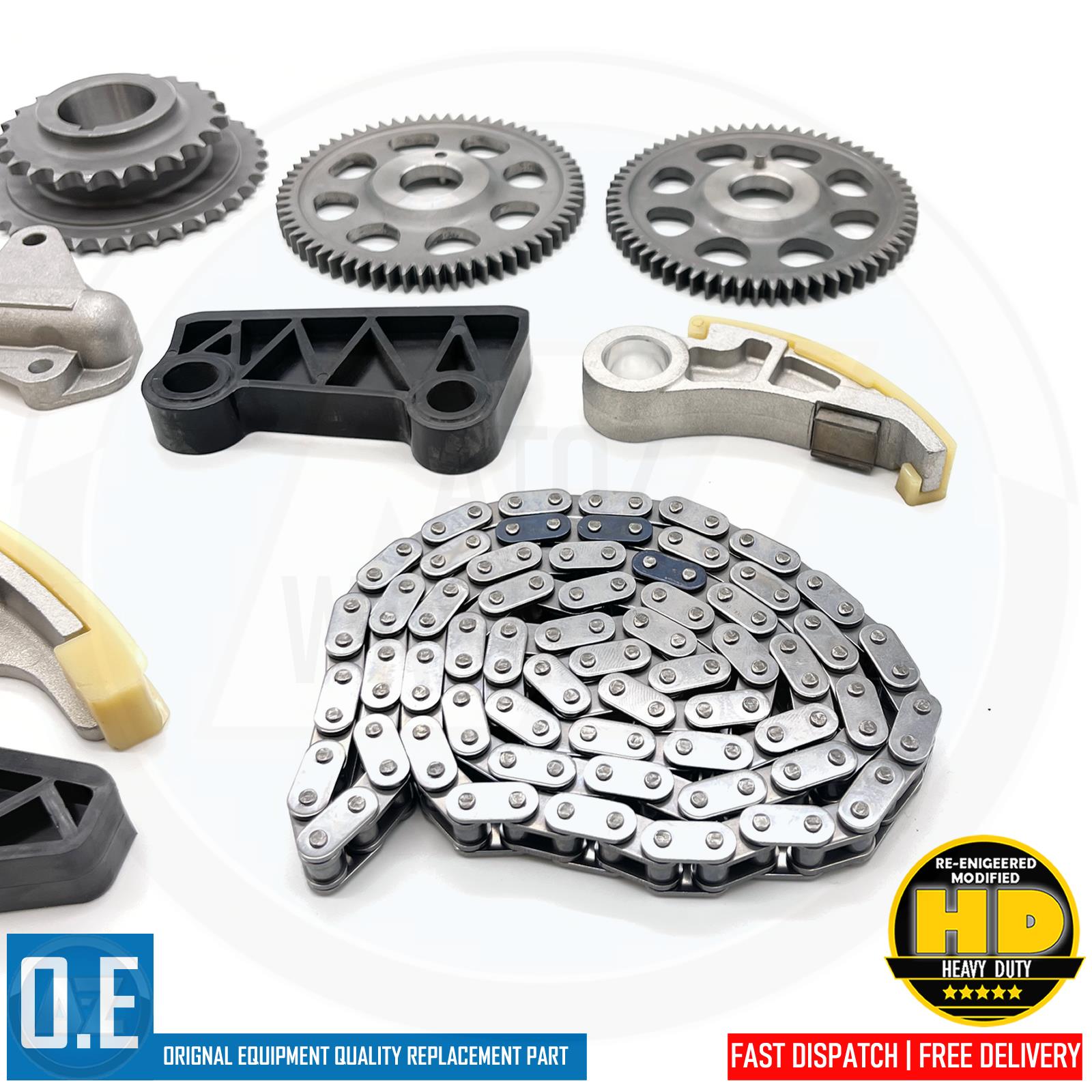 OUR TIMING CHAIN KIT SET HAS NOW BEEN MODIFIED WITH HEAVY DUTY SPROCKETS,TENSIONERS,GUIDE RAILS.