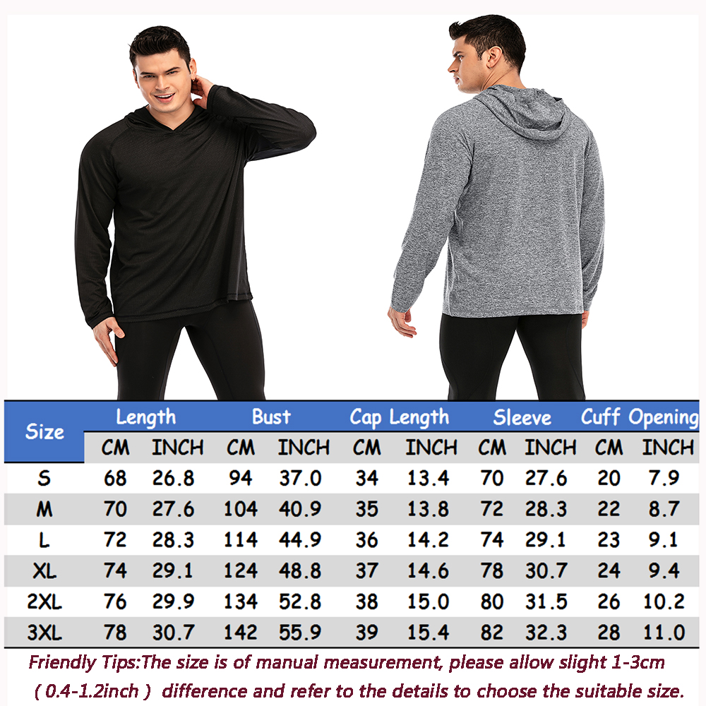 Quality is first with best service. Customers are all our friends. Fashion design, 100% brand new, high quality! Style: hoodie Material: 92%%Polyester8% Spandex Size: S, M, L, XL, 2XL,3XL There is 1-3cm(0.4-1.2inch) difference according to manual measurement. Please check the measurements carefully before you buy the item. Please note that slight color difference should be acceptable due to the light and screen. What you get: 1 x man t shirt hoodie -------------------------------------------------- ----------------------------- Men's Gym Workout Hooded Sweatshirt Pullover Long Sleeve Sweatshirt Breathable