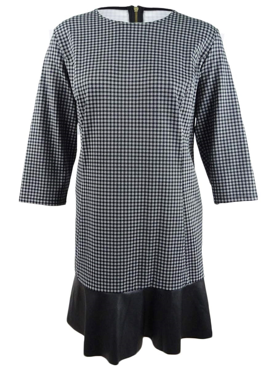 Michael Michael Kors Women's Petites Plaid Ruffle Hem Dress (PS, Black/White)