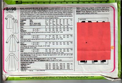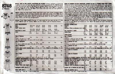 Simplicity Sewing Pattern 8198 Size 10 Vintage Nightgown Robe