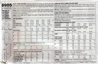 Simplicity Sewing Pattern 8905 Size 6 to 16 XS MD PJs Robe