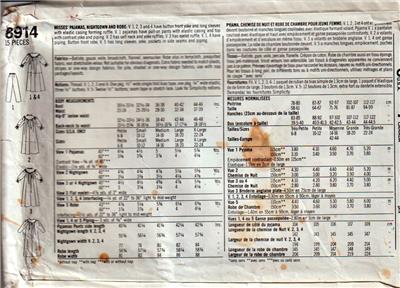 Simplicity Sewing Pattern 8914 Size 10 12 SM Nightgown Robe