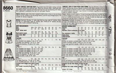 Simplicity Sewing Pattern 8660 Size 6 8 10 Teddy Camisole Skirt