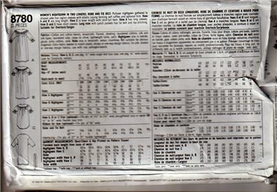 Simplicity Sewing Pattern 8780 Size 26W to 32W Nightgown Robe Belt