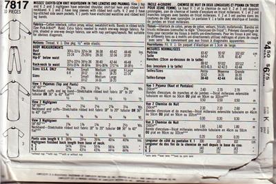 Simplicity Sewing Pattern 7817 Size 14 16 Knit Nightgown Pajamas
