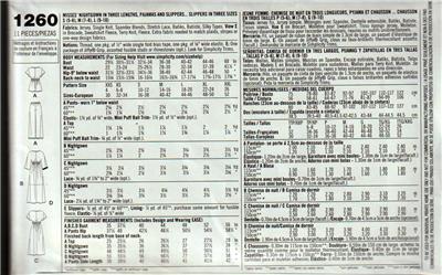 Simplicity Sewing Pattern 1260 Size 4 to 26 XXS to XXL Nightgown PJs Slippers