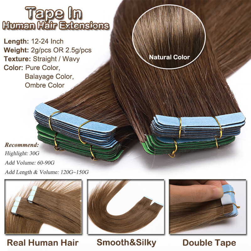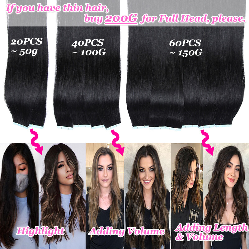 Hair Type:Tape In 100% Real Human Hair Extensions