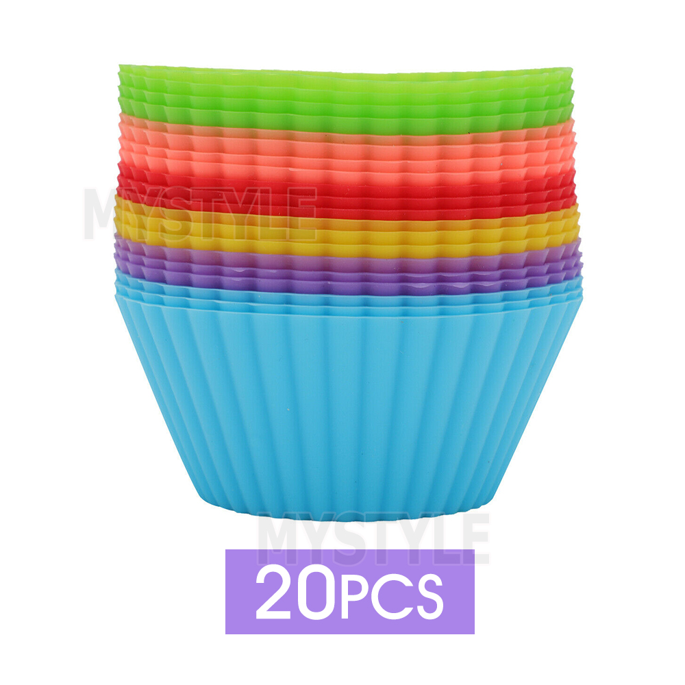 20x Round Cup Cake Silicone Baking Mould Cupcake Case DIY Bake Mold Muffin
