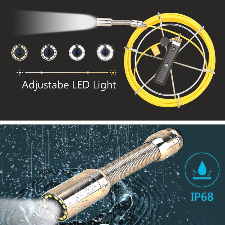 The Drain Sewer Pipeline Industrial Endoscope System with HD 1000TVL high-definition waterproof IP68 #304 stainless steel camera+tipped probe+145°wide viewing angle what make it clear when you inspect some places hard to watch.12 pcs adjustable LEDs to illuminate the hard-to-reach inspection area.Inspections will be seen more clearly in the dark environment.