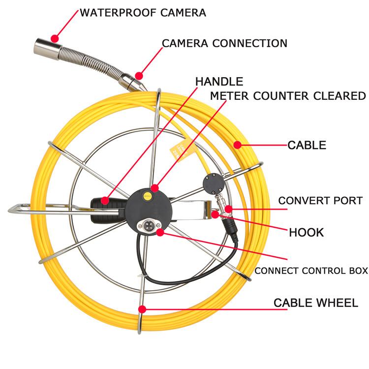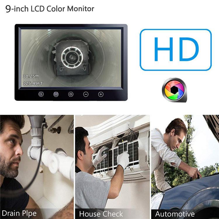 Professional Drain Pipe/Sewer Pipeline Inspection Camera is designed with a 9 inch color TFT LCD monitor with a sun-visor for outdoor inspections.The material of wire is fiberglass rod(diameter: 4.9MM),anti-corrosion/cold/tensile.
