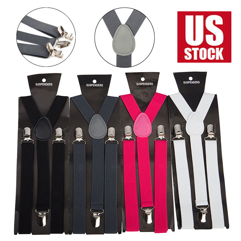 [EXCELLENT MATERIAL] Our mens suspender is made of high quality materials Spandex. Heavy duty Y-back shape design,surprise workmanship,solid hand long. These clip suspenders are comfortable and hold up trousers very well,easy to open clip, enough strength to hold your pants up tightly. Enjoy a good fit with our high quality clasps that grip on securely without unintentional unbuckling. Sturdy and durable. [UNIQUE DESIGN] This suspender has a unique,functional alternative to the classic belt. A pair of clip-on suspenders are a distinctive and versatile way to provide trouser support. With wide elastic suspenders,you can spruce up your formal wear or show off a hip,trendy new way to rock a pair of jeans or shorts. [PERFECT FOR FORMAL & CASUAL EVENTS] Ideal for Daily Wear, Parties, wedding or Fancy Dress etc. Perfect for, dance groups, school functions like band, choir, orchestra and many more special occasions and events. Great for: Trousers, Jeans, Suit, Shorts,any plain button-down shirt and trousers outfit instantly turns to formal attire! Specifications: Spandex, Hand washable fabric Style: Solid Strap design Shortest: 17inch/ 43cm Longest: 31inch/ 80cm Wide: 1inch/ 2.5cm (One size fits most) Include: 1 x Mens Suspender Color: Black/ White/ Grey/ Rose Red Note: 1. Please allow slight 1-3cm difference due to manual measurement and a little color variation for different display setting 2. Size doesn't fit all, please carefully check size chart and select the size based on your real size。 -------------------------------------------------------------------------------------------- Men's Adjustable Clip-on Elastic Y-shaped Suspenders Clip Trousers Suspenders