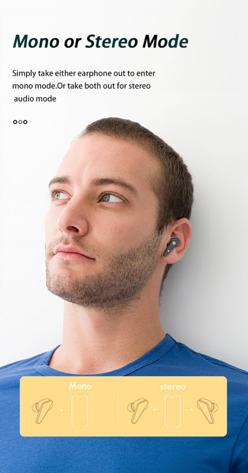 - Mono mode, two earbuds can be used alone or in two devices at the same time, like you have two completely separate headphones.
