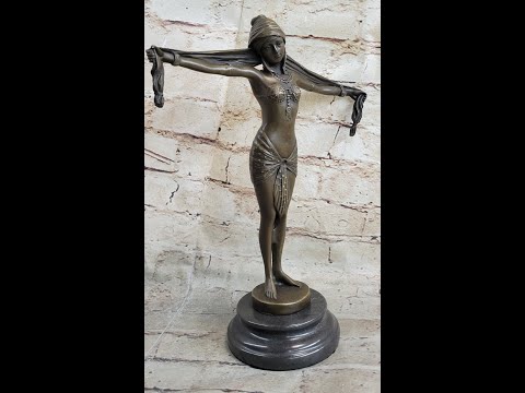 Meticulously crafted from 100% bronze, this masterpiece is a testament to exquisite artistry. Handmade using the revered "Lost Wax Method," the sculpture boasts a rich brown patina that adds depth and character. Mounted upon a sleek marble base, it exudes a sense of refinement. To authenticate its origin, the sculpture is signed by the esteemed artist Chiparus.