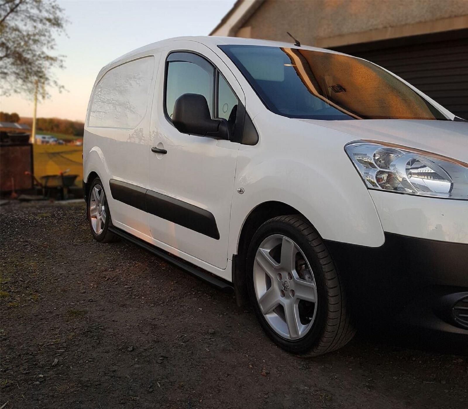 High quality Black Powder Coated Stainless Steel Side Bars For Peugeot Partner / Rifter (2019 - present models). These top of the range side bars will have your vehicle looking top spec at a fraction of the cost of the genuine items but with the same high quality.