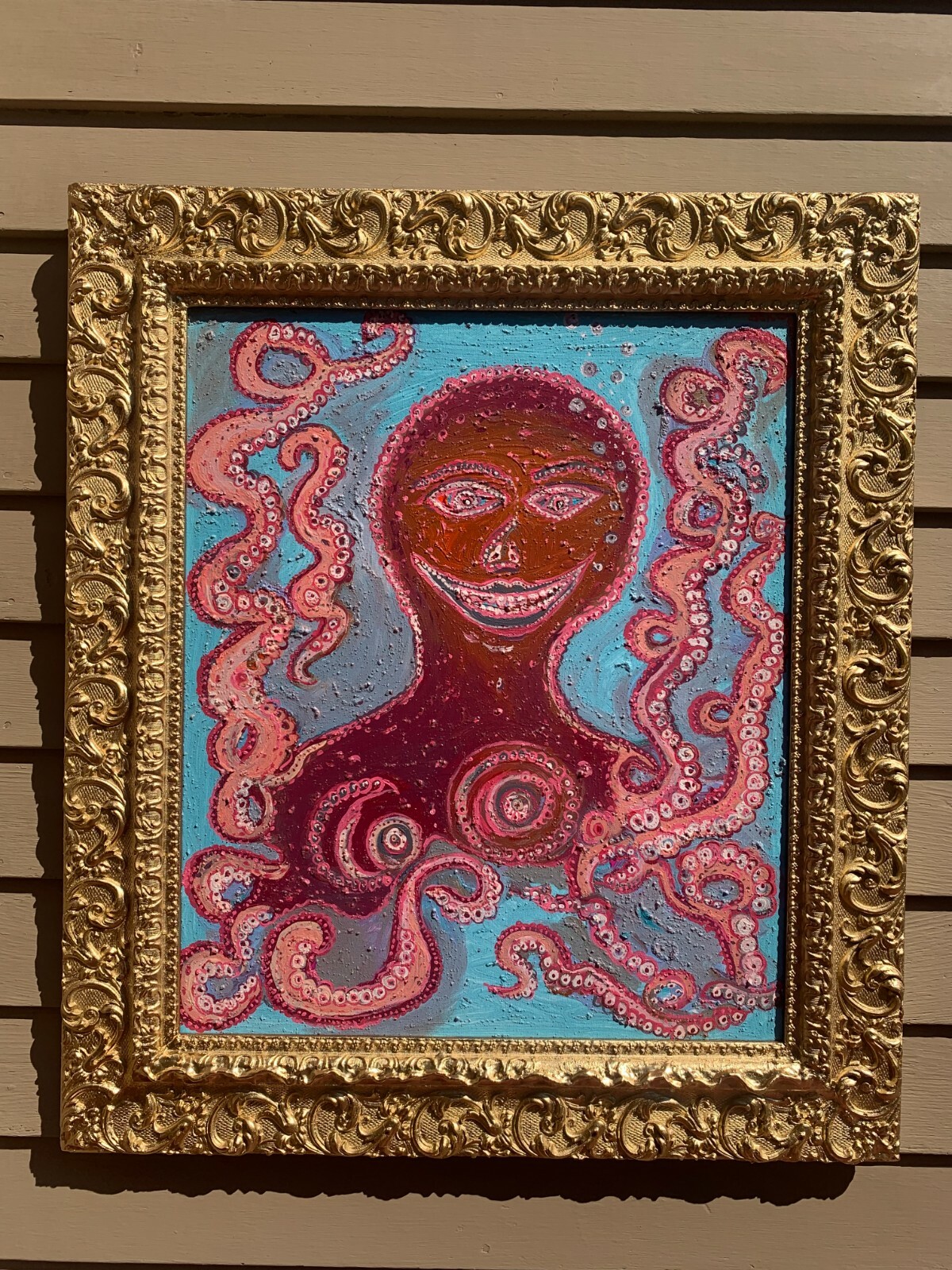 This artwork is perfect for collectors of unique contemporary fantasy or outsider art and will make a statement in any modern, eclectic, or coastal interior.