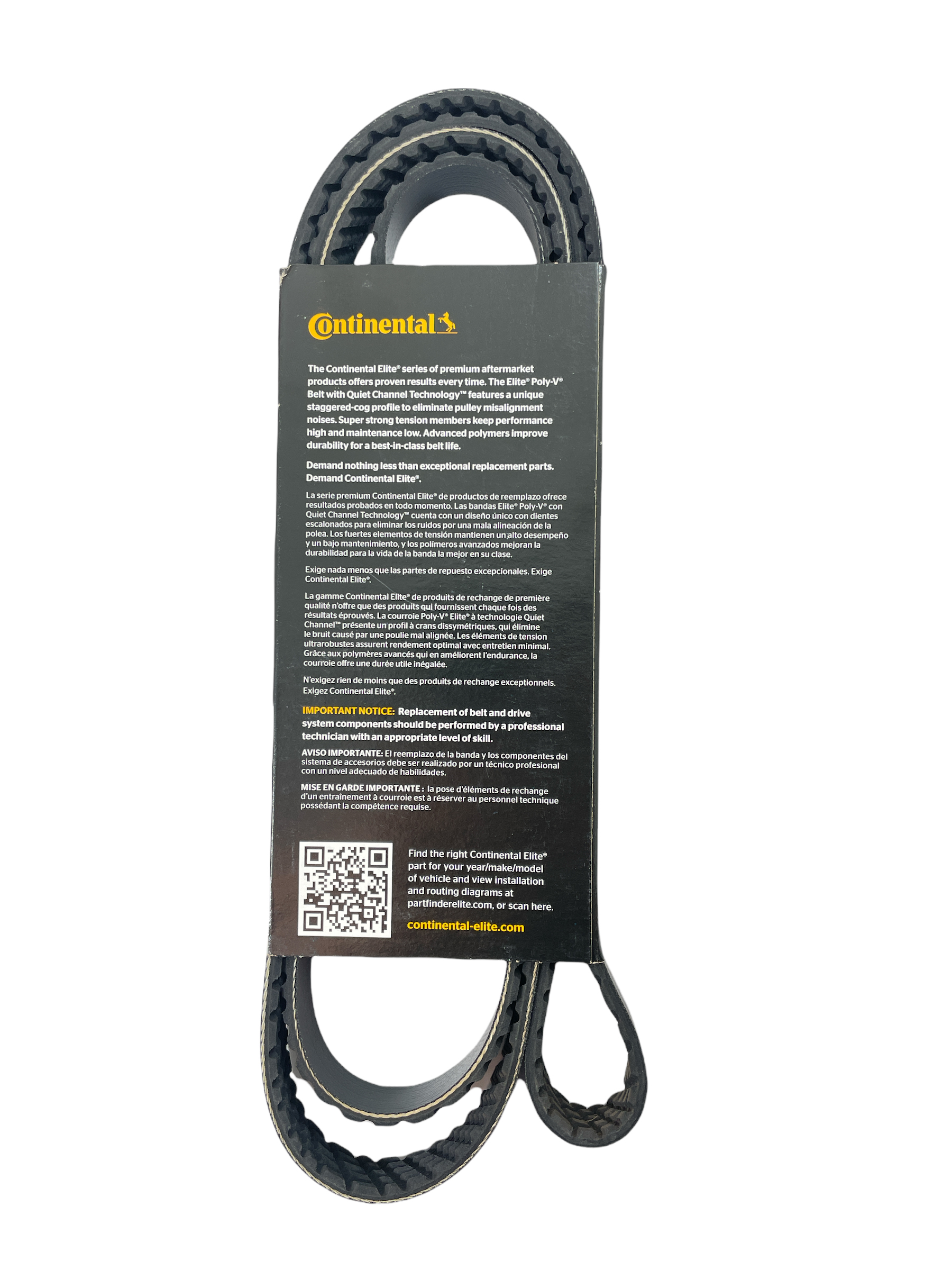 Elite Poly-V takes performance to the next level with Quiet Channel Technology, making the belt run quieter and last longer. The combination of a unique staggered """"Helicog"""" profile with advanced EPDM rubber compounds virtually eliminates the chirps, squeaks and squeals typically associated with pulley misalignment. Advancements in design and materials give you the highest performance, low maintenance and proven results – with no exceptions.