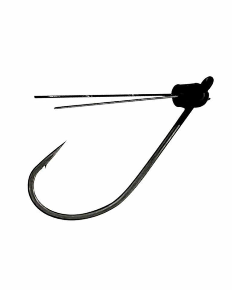 Strong and extra sharp hooks. Attached spring securely holds onto soft baits or dough baits. Available in bronze finish.