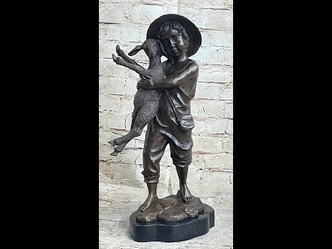 Experience the rustic charm of our Young Farm Boy amp; His Sheep bronze statue, a timeless depiction of rural life and innocence. Handcrafted with meticulous attention to detail, this sculpture captures the essence of a young shepherd tending to his beloved sheep. Crafted using the ancient lost wax method, the piece is an exemplary work of art, reflecting the artist's dedication to preserving the authenticity and emotion of the scene.