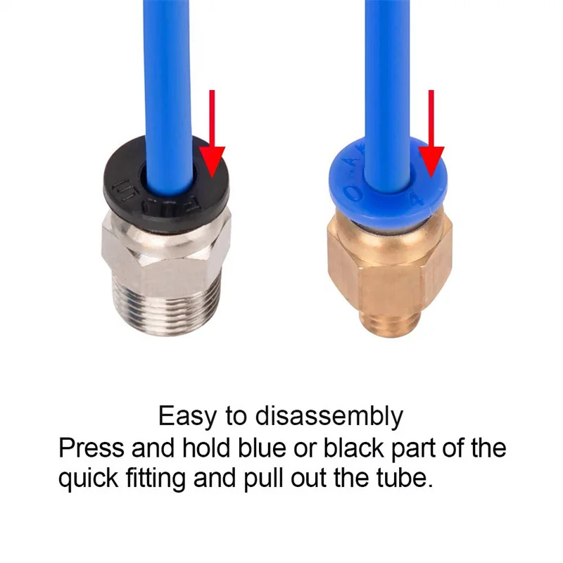 The upper part can be inserted outer diameter 4mm PTFE tube and self-locking.